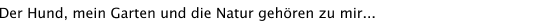 Es ist einfach herrlich mit dem Hund in der Natur oder in meinem kleinen Garten zu sein. So konnten wir auch den Sommer 2003 mit seinen vielen heißen Tagen im Garten unter schattigen Bäumen genießen. Es ist wunderschön, am Morgen aufzustehen, die Luft die Vögel, einfach die Natur zu genießen. Der Hund fühlt sich,wie man sieht, auch sehr wohl.